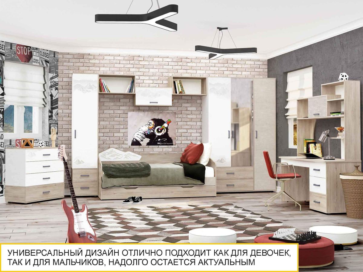 «Эверест» – это стильная и функциональная мебель, создающая особое настроение для покорения новых вершин. Универсальный дизайн прекрасно подойдет как для мальчиков, так и для девочек, останется актуальным на долгие годы.