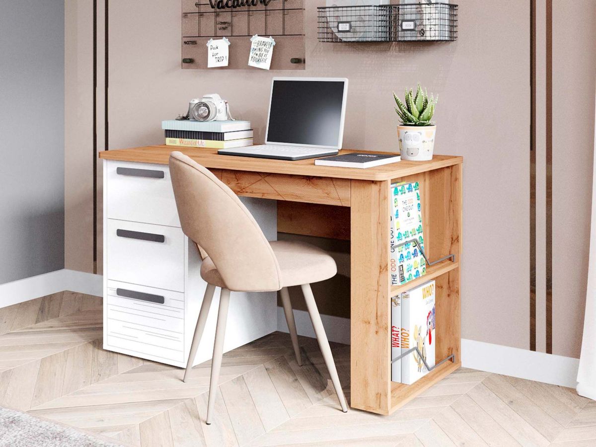 Стол «Аляска 503.15» является частью модульной программы «Аляска 503». Коллекция подростковой «Аляска 503» - это современное и функциональное пространство для жизни и учебы. Сочетание белоснежных фасадов с теплым оттенком натурального дерева создает стильный образ коллекции, а универсальный дизайн отлично подойдет как юношам и девушкам, так и детям дошкольного возраста.