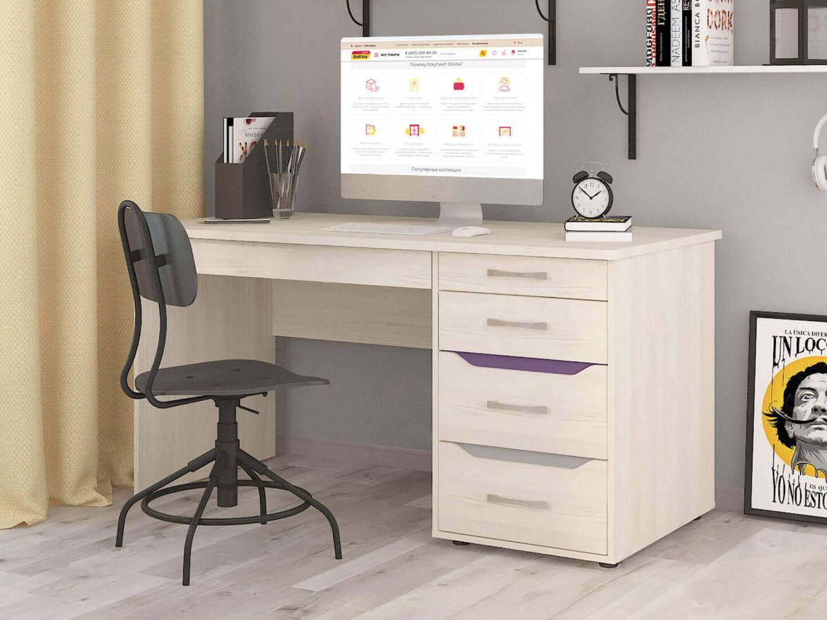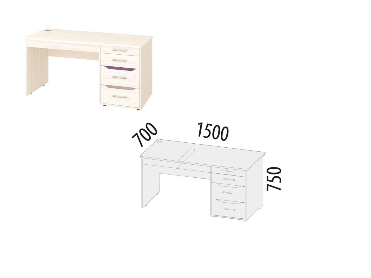 Письменный стол «Мегаполис 55.24.1» является частью модульной программы «Мегаполис». Просторная поверхность стола позволяет удобно разместить как компьютерное оборудование, так и канцелярские принадлежности. Под столешницей расположен выдвижной ящик для хранения мелочей. В тумбе в правой части стола установлены четыре выдвижных полновыкатных ящика. Шариковые направляющие обеспечивают длительный срок эксплуатации изделия. Для увеличения функциональности стола его можно комплектовать надстройкой «Мегаполис 55.25».