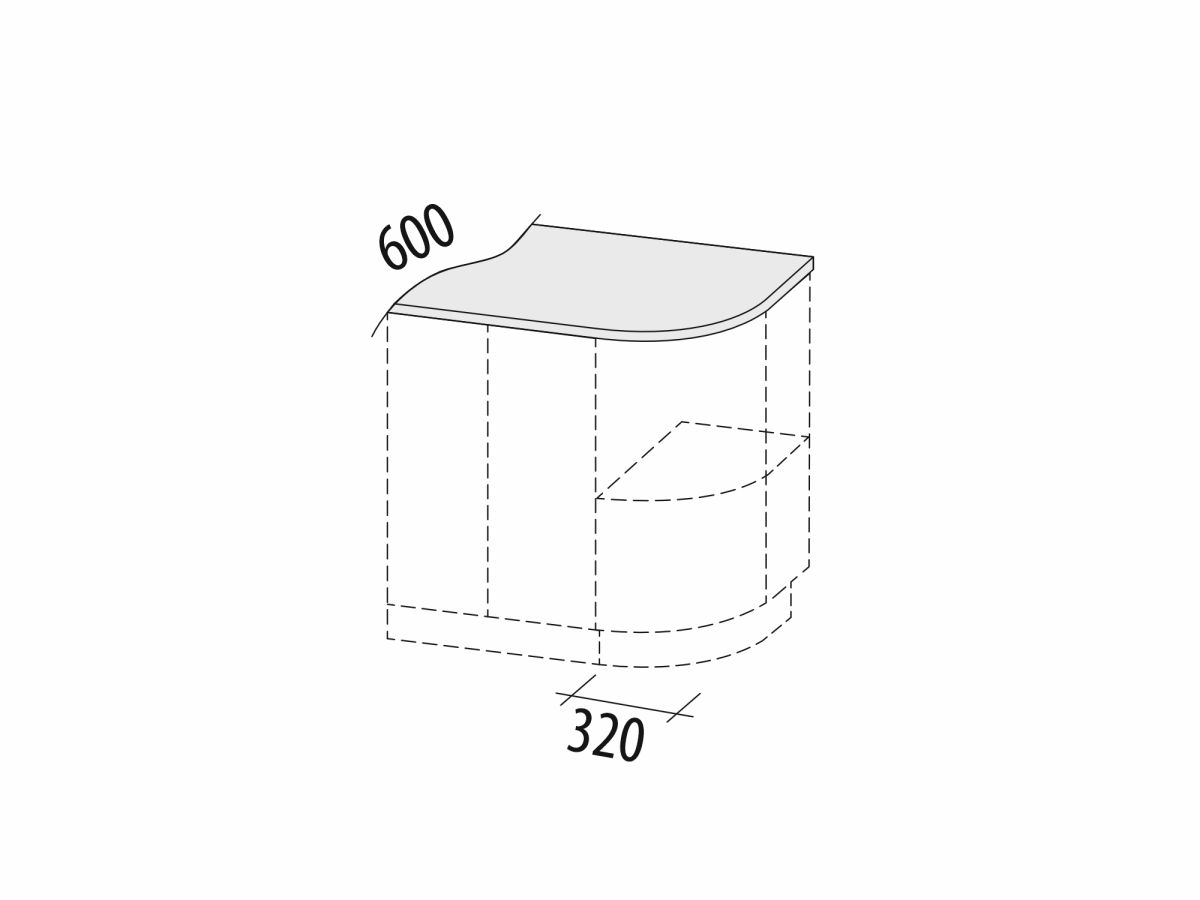 Радиусная столешница предназначена для гарнитуров с торцевыми модулями кухни. Плавные линии придают интерьеру современный и элегантный вид, а сама столешница позволяет более эффективно использовать пространство, особенно в угловых или нестандартных кухонных планировках, предоставляя дополнительную рабочую поверхность.