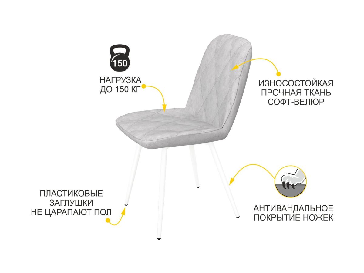 Стул Велюр Престиж (03) Гратта Опал серый-Белый