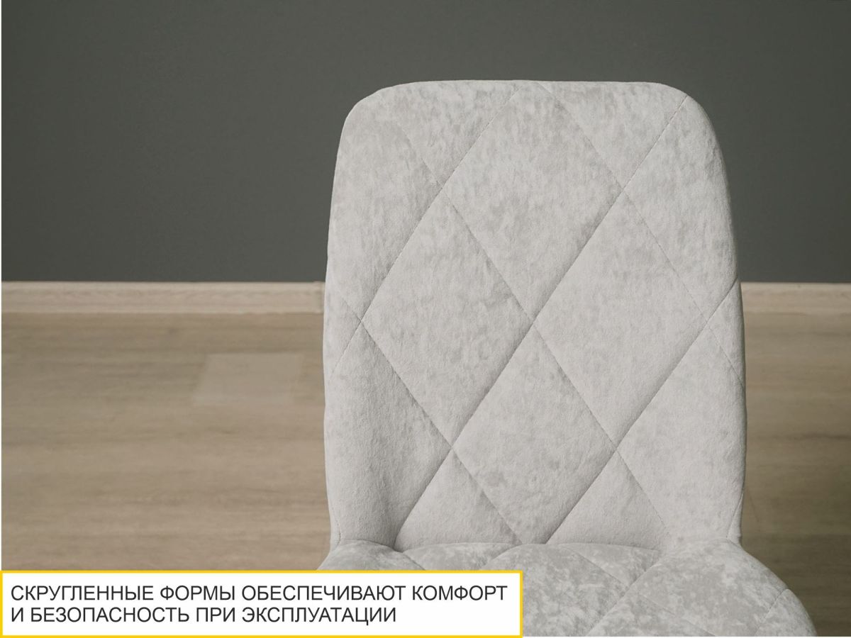 - Сиденье и спинка стула выполнены из прочного, но приятного на ощупь софт-велюра, который не требует специального ухода и легко чистится.