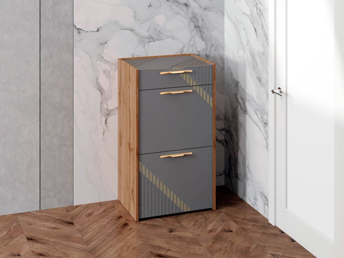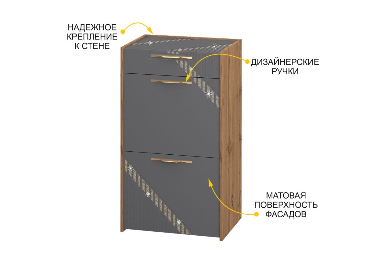 Тумба для обуви «Монако 402.11» является частью модульной серии «Монако». «Монако 402» – образец элегантного стиля и утонченного вкуса. Сочетание матовой графитовой поверхности фасадов с благородной древесной текстурой «Дуб Вотан» создает особую атмосферу гармонии и комфорта.