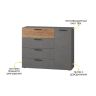 - Фасады комода выполнены из МДФ толщиной 16 мм, корпус - из ЛДСП толщиной 16 и 22 мм.