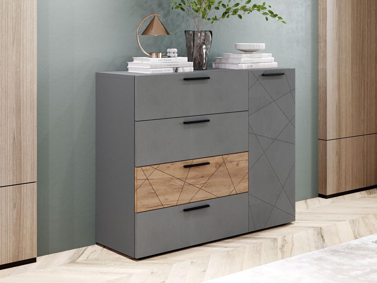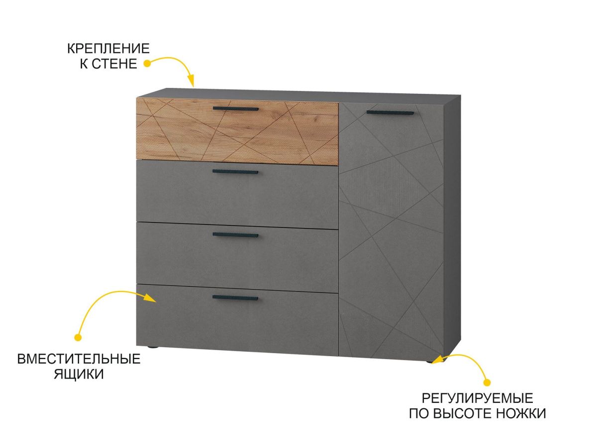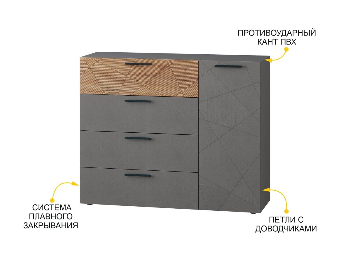 - Комод произведен из МДФ и ЛДСП повышенной плотности. Материал устойчив к механическим и термическим воздействиям. ЛДСП выдерживает min 300 циклов на истирание, что почти в 5 раз больше, чем требуется по ГОСТу (min 65).