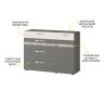 - Надежное крепление к стене обеспечивает безопасную эксплуатацию изделия (крепежная фурнитура в комплекте). Оно необходимо, чтобы исключить риск опрокидывания мебели при выдвижении ящиков