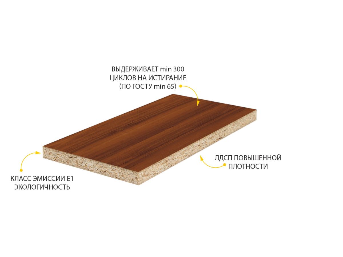 - ЛДСП выдерживает min 300 циклов на истирание, что почти в 5 раз больше, чем требуется по ГОСТу (min 65).