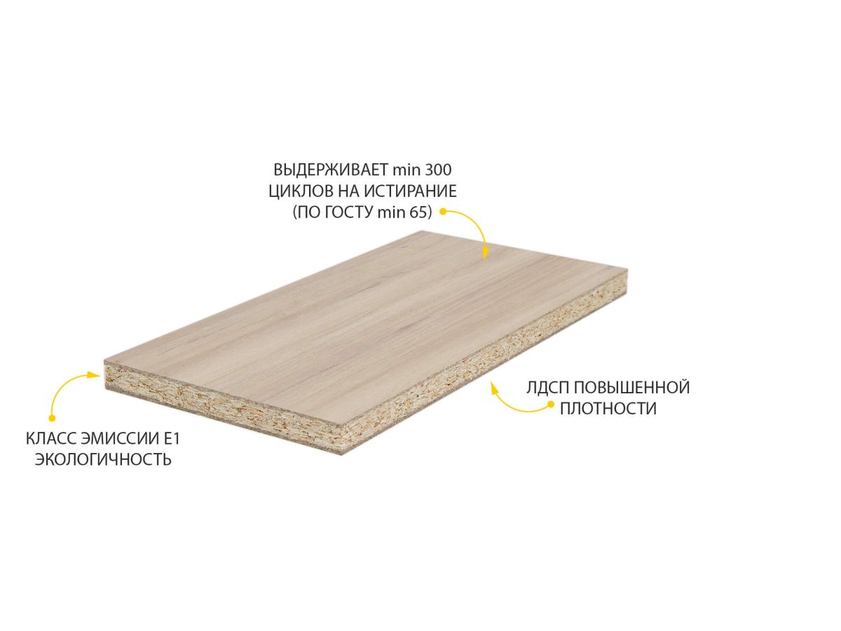 • ЛДСП выдерживает min 300 циклов на истирание, что почти в 5 раз больше, чем требуется по ГОСТу (min 65).
