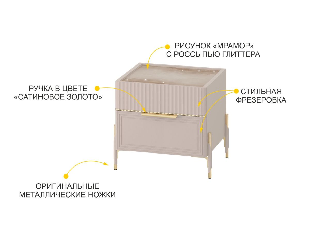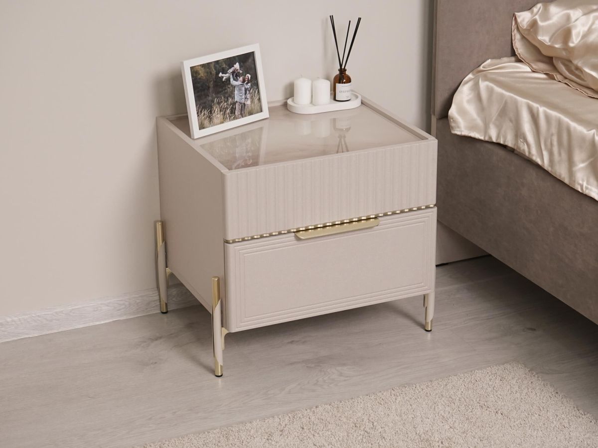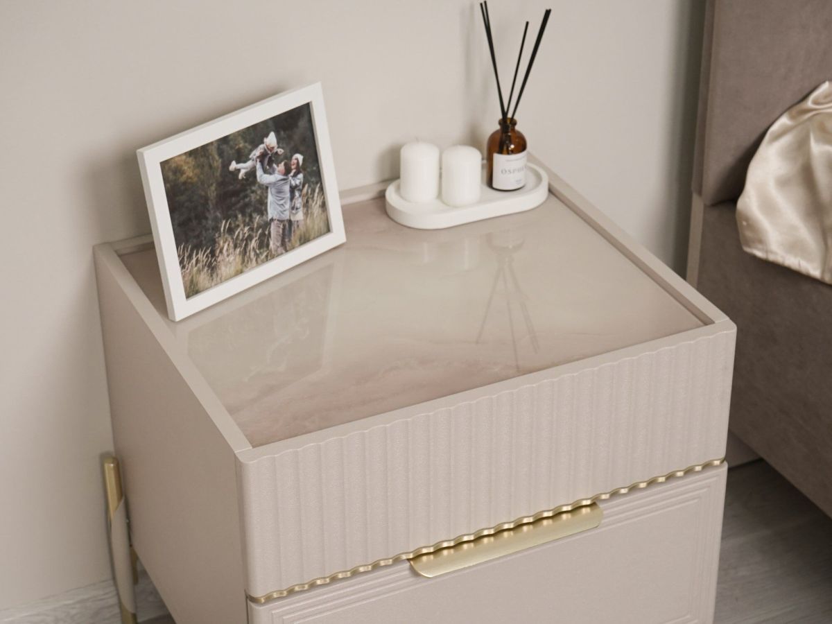Прикроватная тумба «Флоренция 904.07» является частью модульной программы «Флоренция». Спальня «Флоренция» – это образец изящности и современной роскоши. Нежный цвет «Кашемир» создает светлую и теплую основу в интерьере, которая наполняет пространство спокойствием и гармонией. Оригинальные элементы в цвете «сатиновое золото» и элегантная фрезеровка подчеркивают утонченный дизайн коллекции.