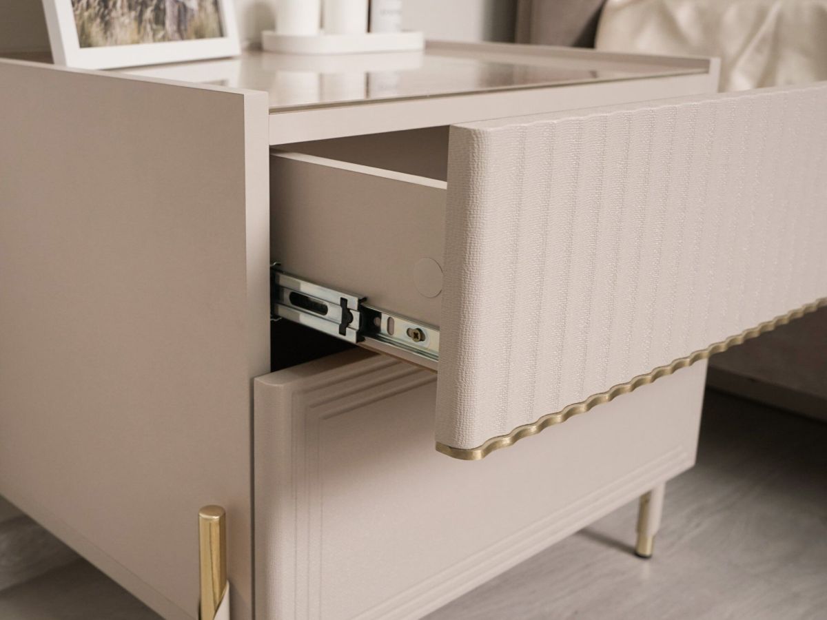 - Вместительные ящики обеспечивают удобное хранение вещей. Верхний ящик тумбы легко открывается за счет выступа фасада.