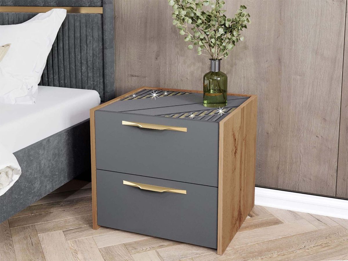 Прикроватная тумба «Монако 902.07» является частью модульной программы «Монако 902». Коллекция «Монако» - это образец элегантного стиля и утонченного вкуса. Сочетание матовой графитовой поверхности фасадов с благородной древесной текстурой создает особую атмосферу гармонии и комфорта.