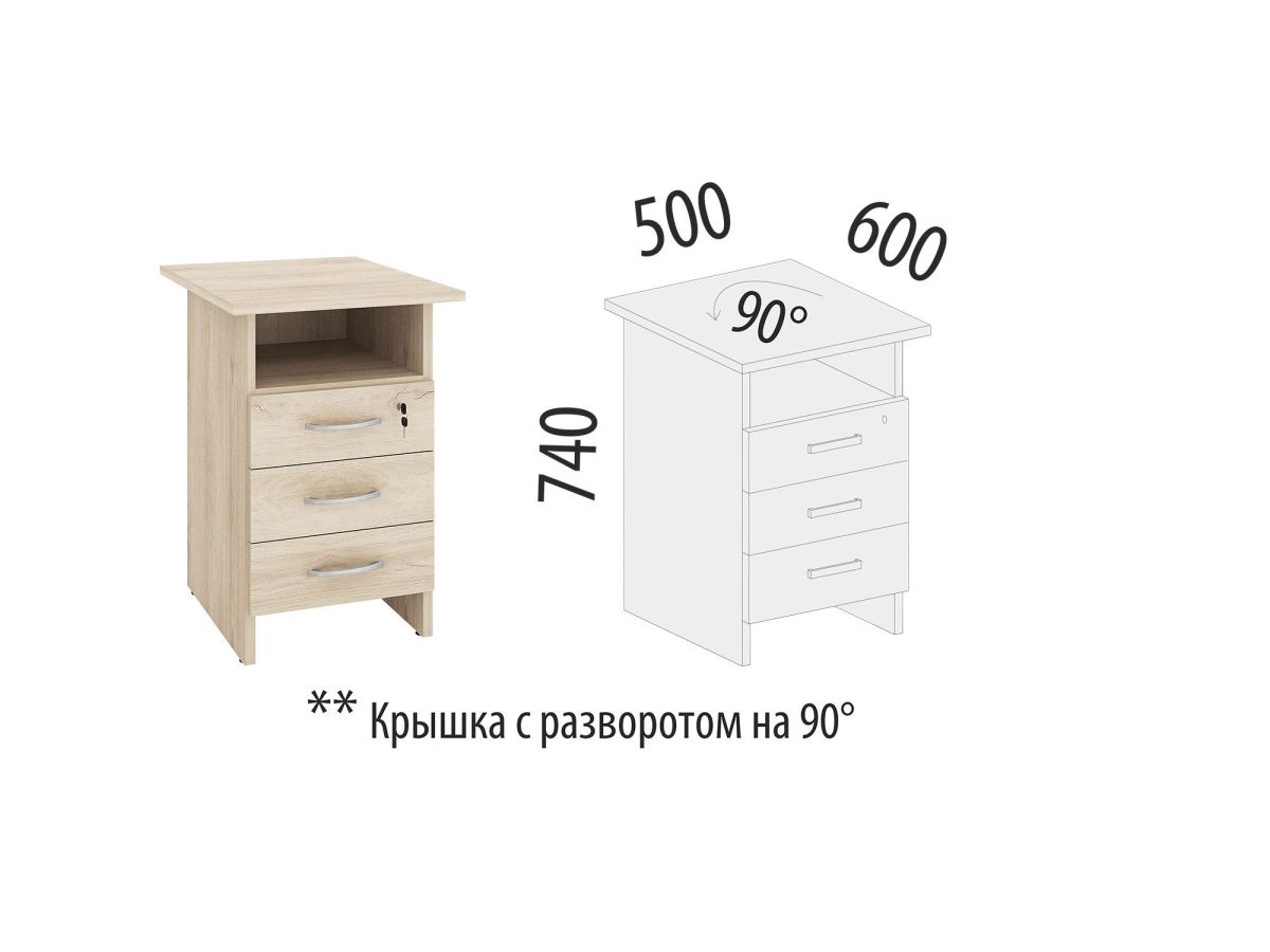• Тумба с разворотной крышкой идеально дополняет офисные и письменные столы, обеспечивая удобство использования как справа, так и слева от них. Это позволяет функционально организовывать пространство в офисе или домашнем кабинете, выбирая оптимальное расположение мебели в зависимости от потребностей пользователя.
