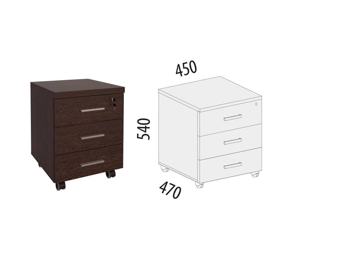 Тумба с тремя ящиками «Цезарь 21.05» является частью модульного набора для офиса «Цезарь». Для удобного перемещения тумбы по офису вместо ножек у модуля установлены колесики. Верхний ящик тумбы закрывается на ключ. В комплекте к замку тумбы прилагаются два ключа.