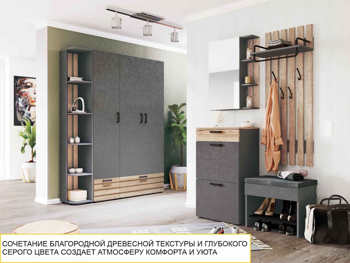 • Трендовое сочетание благородной древесной текстуры и глубокого серого цвета создает атмосферу комфорта и уюта.
