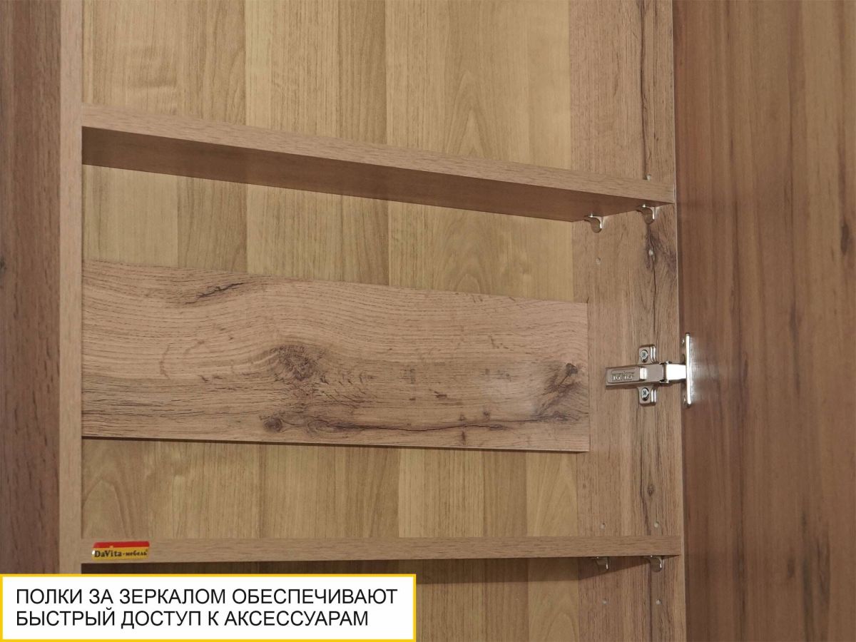 - Полки за зеркалом позволяют хранить разные мелочи и иметь под рукой необходимые аксессуары.